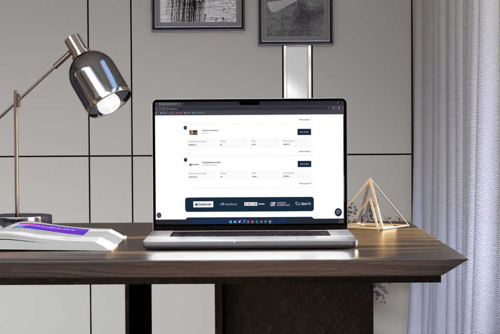 Nasz zespół nie zadziałał jak zwykły wykonawca. Staliśmy się partnerem, który zanurzył się w świat finansów, aby zrozumieć każdą zmienną. Na tym fundamencie, poprzez inżynierię odwrotną, odtworzyliśmy i zintegrowaliśmy niezbędne API. Następnie stworzyliśmy modułowy system precyzyjnych kalkulatorów i porównywarek. Całość uzupełniliśmy dedykowanym chatbotem AI, wytrenowanym na specyfice polskiego rynku kredytowego, aby prowadził użytkowników za rękę.